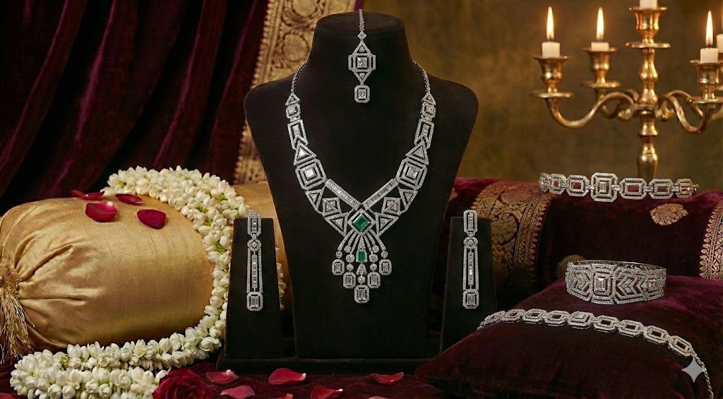 Designed for brides who prefer sophistication with a modern edge, this set blends heritage luxury with contemporary boldness—making it ideal for grand receptions, royal-themed celebrations, and unforgettable bridal moments.