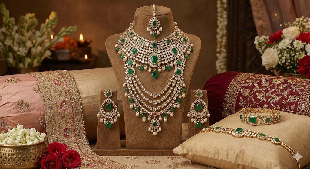 Designed to elevate bridal grandeur, this set captures the richness of Indian royalty and the charm of age-old artistry. Perfect for wedding day rituals, royal-themed ceremonies, and any moment meant to be remembered forever.